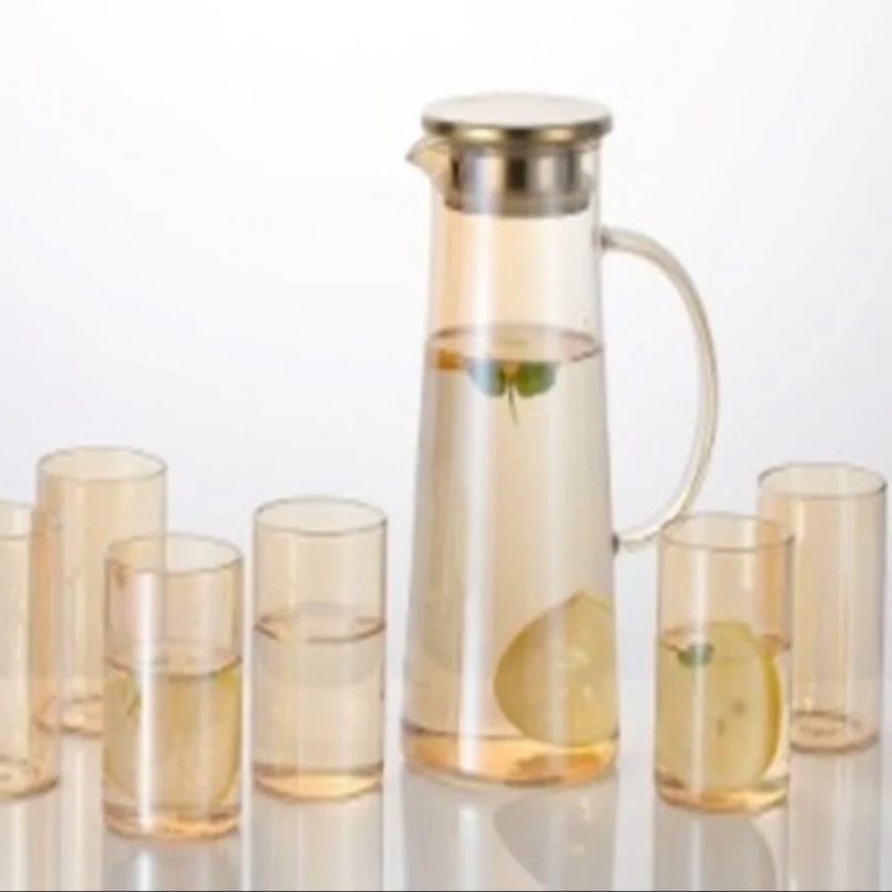 Stay hydrated in style: This transparent jug and glass set brings a fresh, contemporary touch to every meal, picnic, or party.