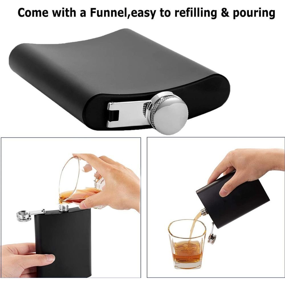 The set includes a leak-proof hip flask, a matching stainless steel shot glass, and a metal funnel for effortless filling without spills. Compact and lightweight, it easily fits into pockets, backpacks, or travel bags—ideal for parties, camping, trekking, celebrations, or personal use.