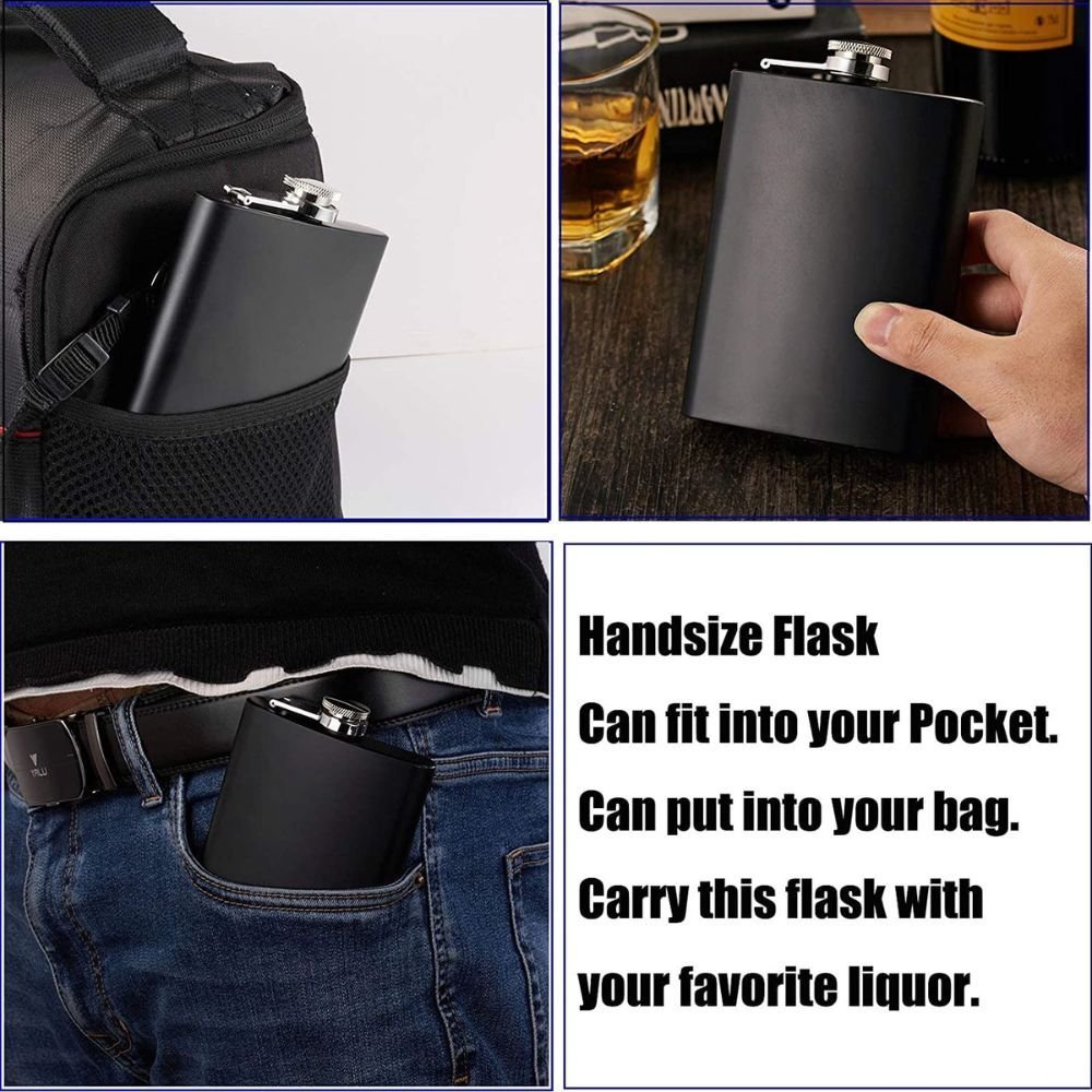 Upgrade your drinking experience with this Stainless Steel Hip Flask Set (8 Oz / 236 ml) designed for style, durability, and convenience. Crafted from high-quality stainless steel, the flask features a premium matte black finish that offers a modern, classy look while resisting scratches and fingerprints.