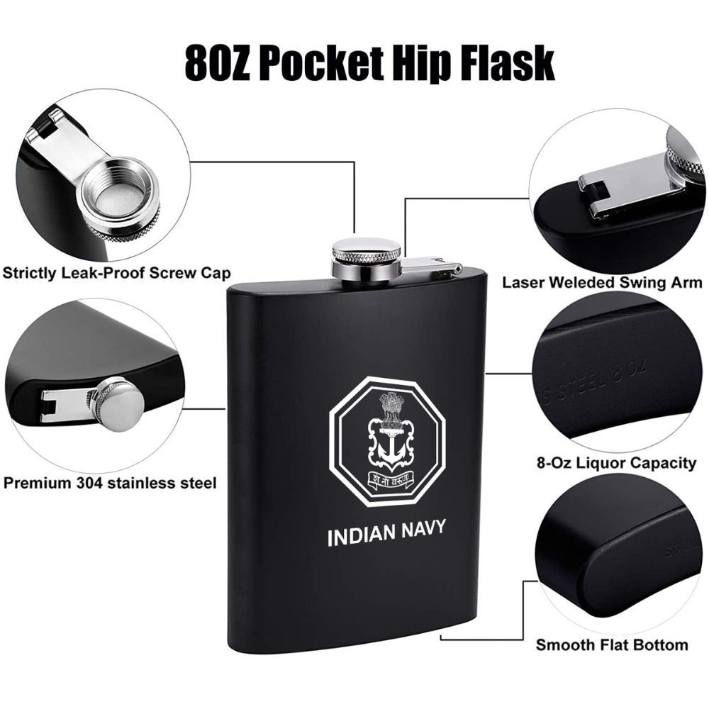 Adorned with a bold Indian Navy emblem, this flask set makes an excellent gift for defence personnel, patriots, birthdays, anniversaries, or festive occasions. Built to last and designed to impress, it’s a perfect blend of utility and elegance.