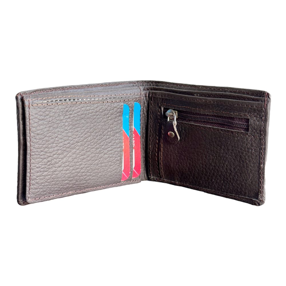 Upgrade your everyday essentials with this stylish men’s genuine leather wallet. Designed in a classic bi-fold format, it offers a refined look while ensuring maximum utility. The wallet includes multiple card slots for debit, credit, and ID cards, along with a separate compartment for currency notes. A secure zippered coin pocket keeps loose change safe and organized.
