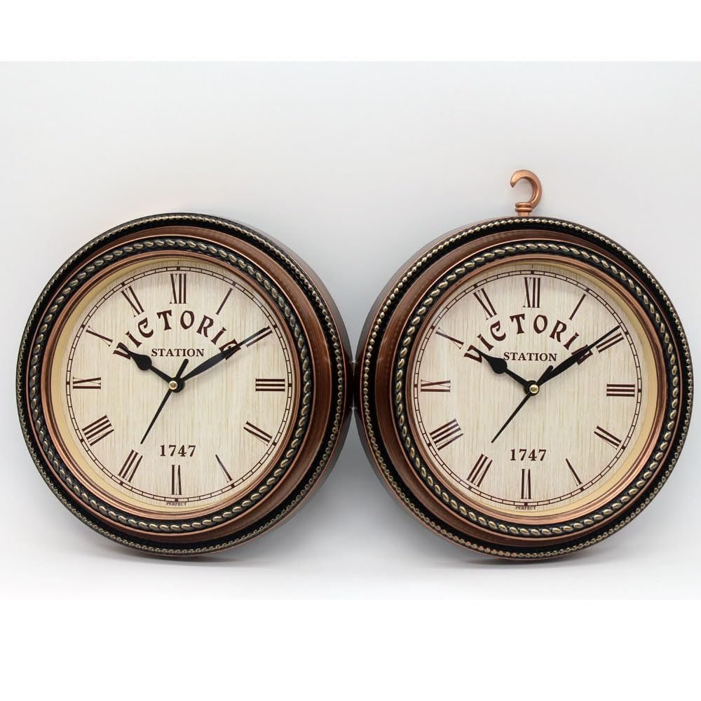 Add vintage charm to your space with this dual-sided Victorian station wall clock. Made from durable plastic with a wooden-pattern finish and copper tone, it features a classic analog dial and easy battery-powered operation. Ideal for home, office, café or living room décor, and perfect as a thoughtful gift.